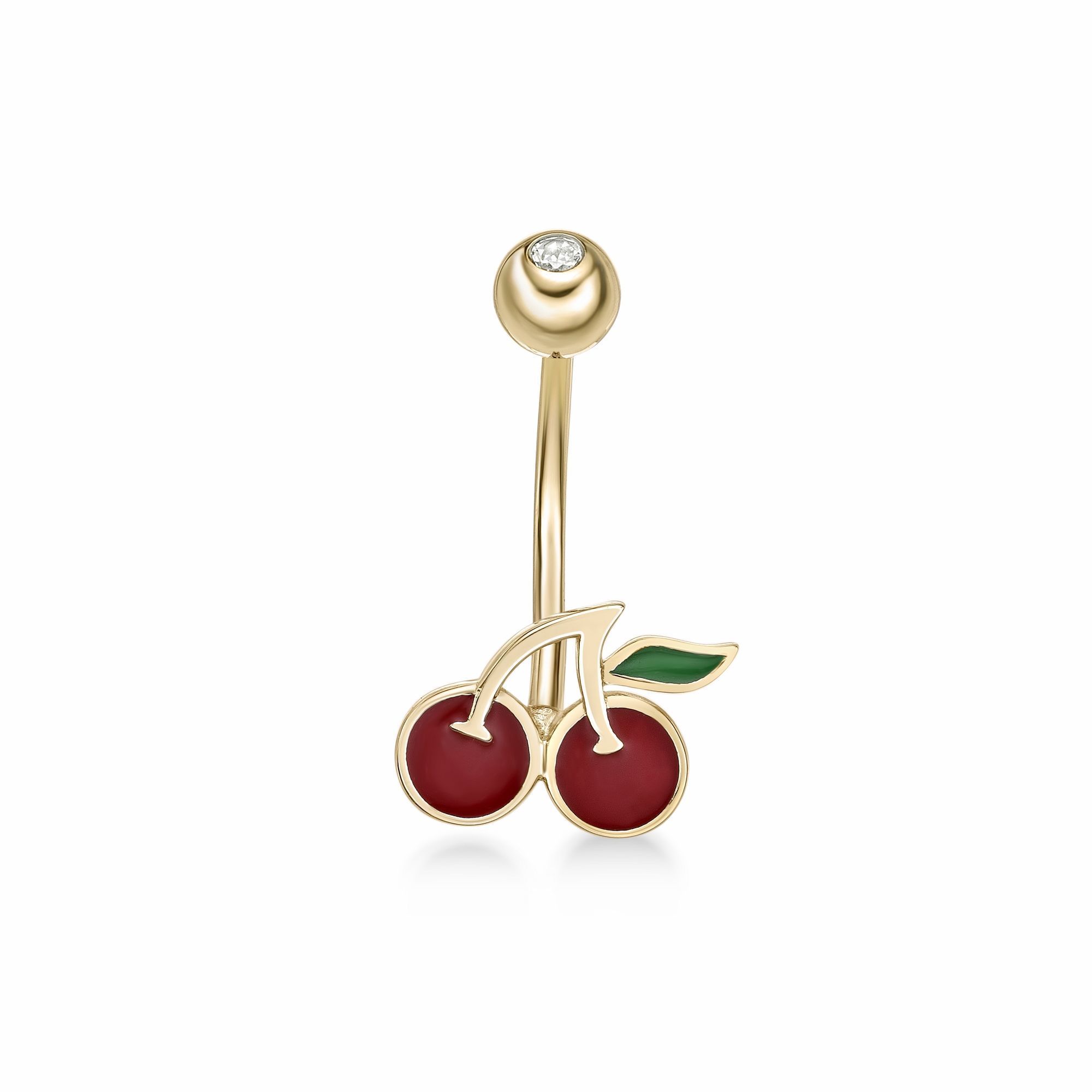 Get ready to turn heads and show off your individuality with our stunning 16 Gauge 10K Yellow Gold Red Enamel Cherry Belly Ring. This beautiful piece of jewelry is perfect for the self-assured woman who wants to add a touch of glamour and playfulness to her style.