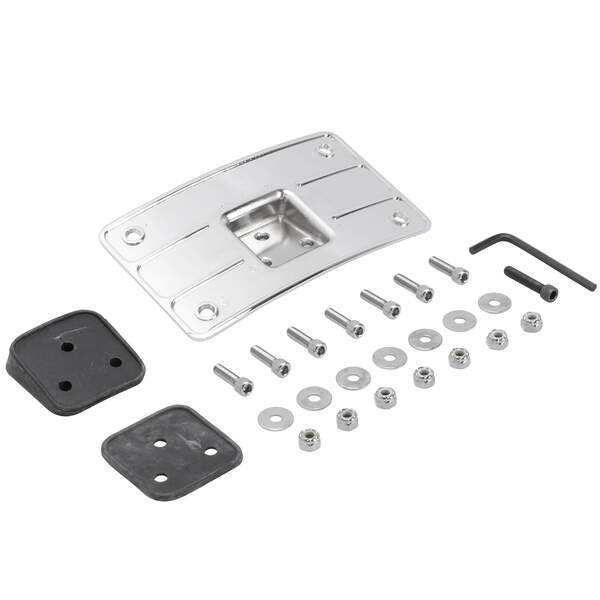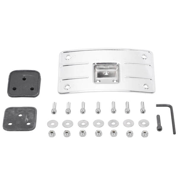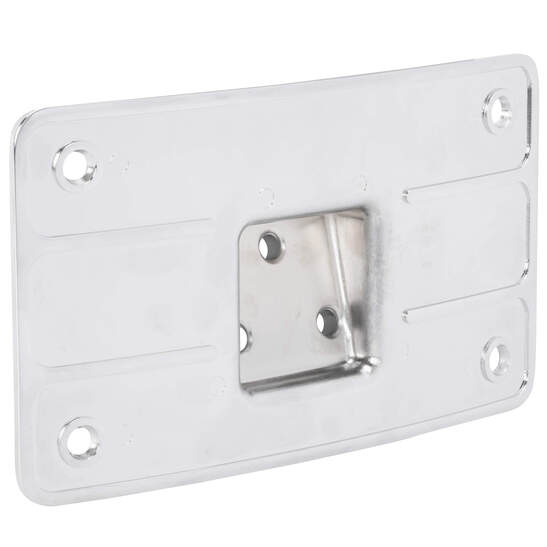 This Chrome Curved License Plate Mount is constructed from steel and forged aluminum and has a chrome finish. This frame fits all standard 4" x 7" license plates and the mount is designed to fit on flat or rounded fenders. Kit includes two different rubber gaskets so you can adjust the angle of the mount and all the hardware for installation.