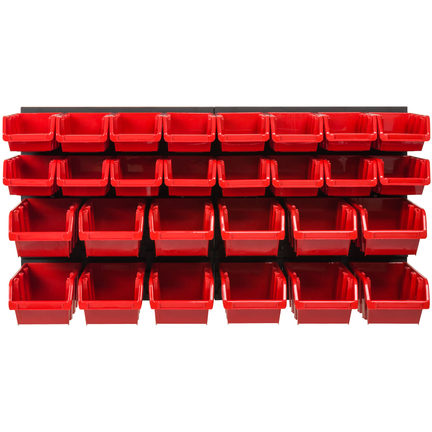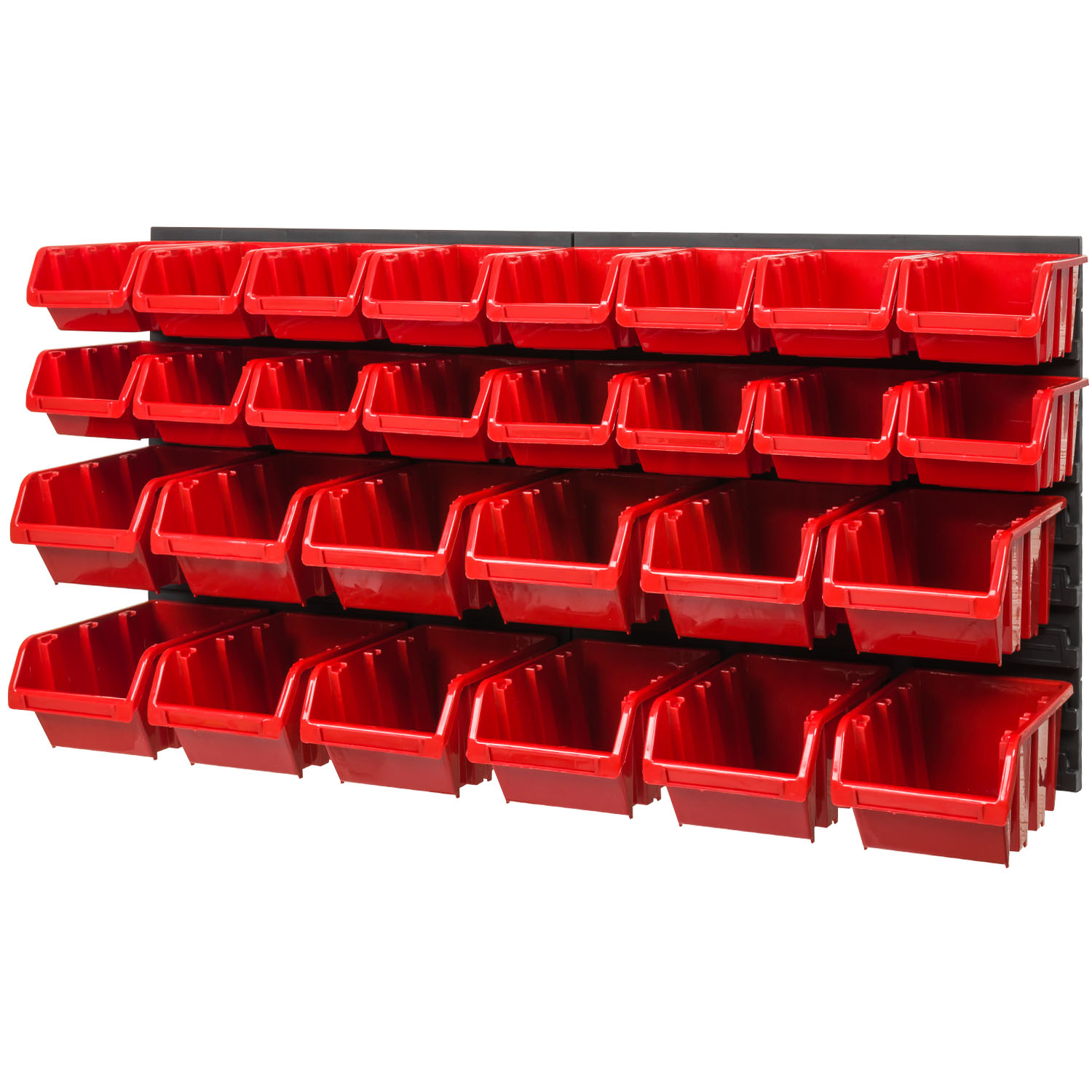 Le scatole sono impilabili l'una sull'altra o possono essere appese al muro utilizzando lo scaffale. Completa le scatole con altri set se necessario. Così crei ordine nella tua casa, officina o garage.