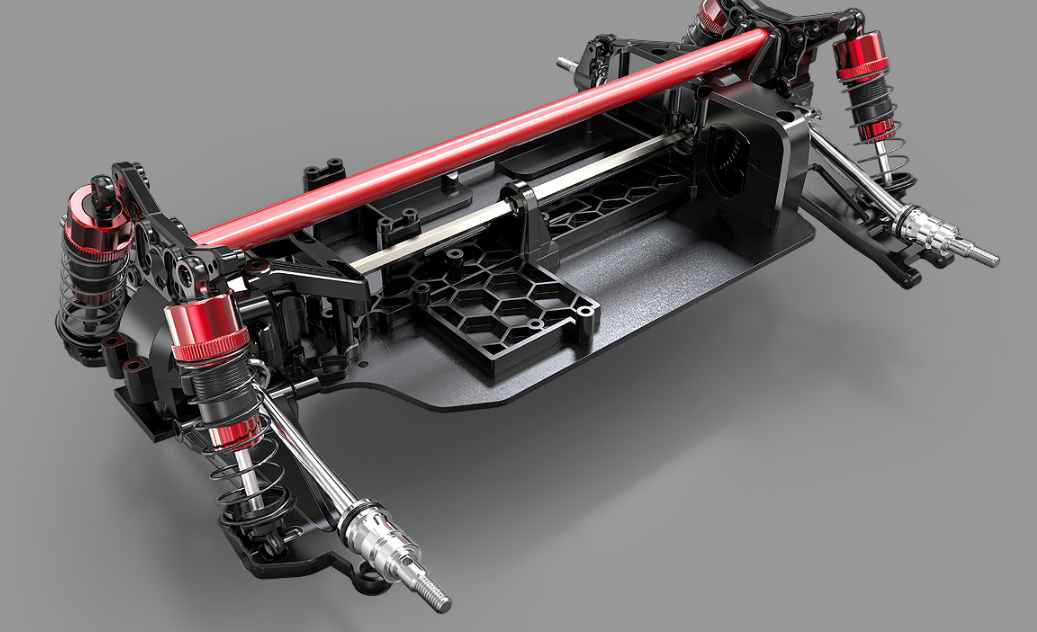 The MJX Hyper-Go 14210 V3 car features fully serviceable and user-configurable parts including adjustable independent suspension, multiple shock absorber positions, adjustable camber, adjustable toe angle, adjustable chassis clearance. Most parts can be upgraded including the chassis strengthened with red alloy parts.