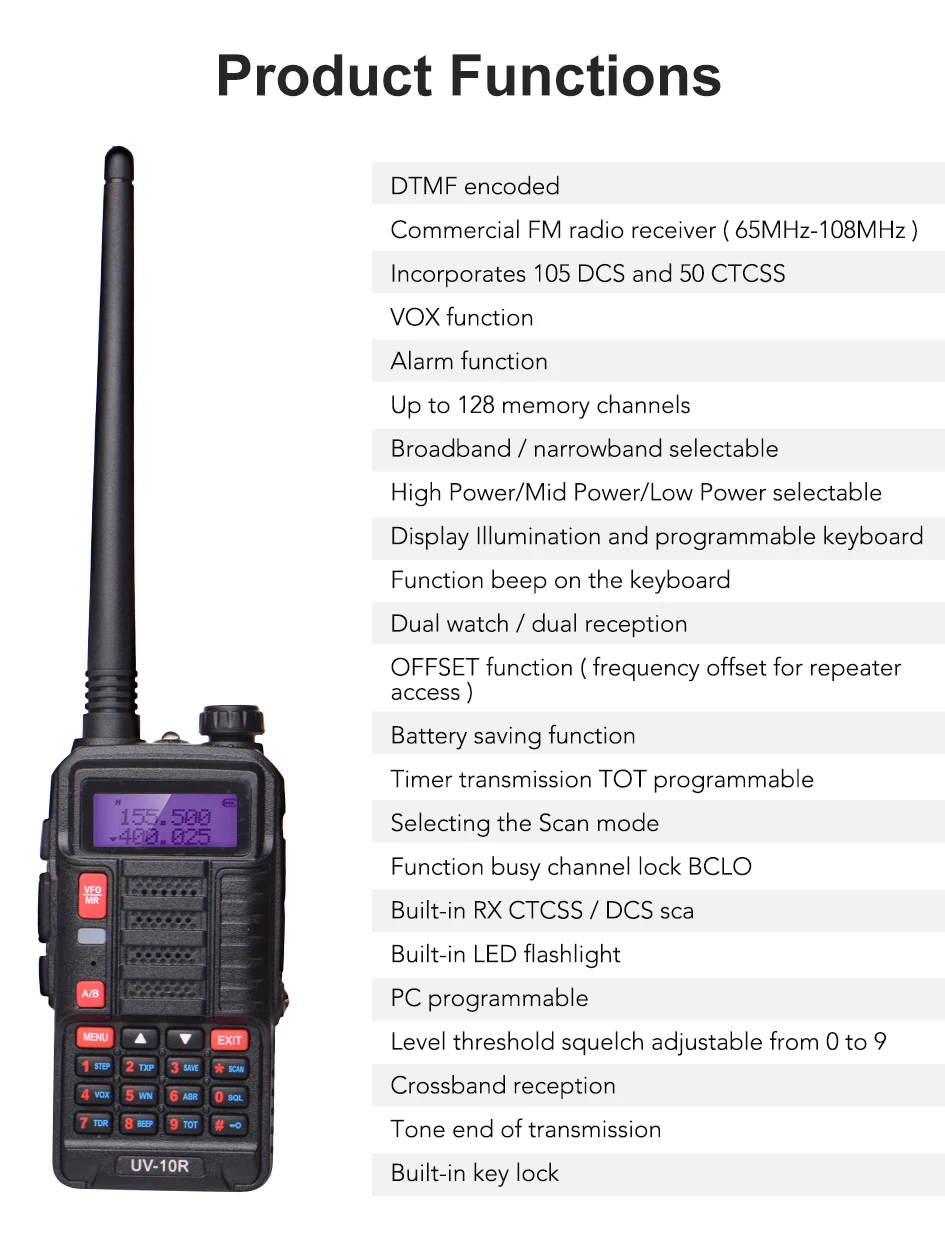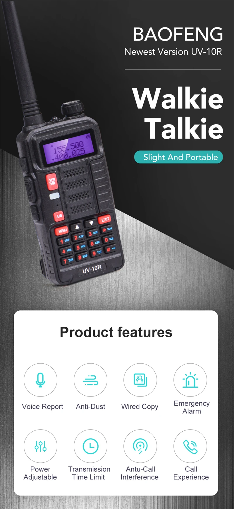 1 X Baofeng UV-10R Walkie Talkie radio a due vie