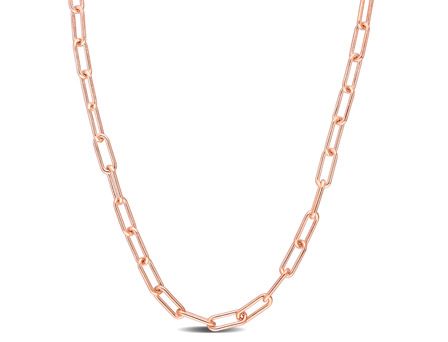 Say hello to a flawless style statement with this exquisite Paperclip Necklace. Crafted in glistening rose plated sterling silver, this impeccable 18-inch necklace is securely and comfortably fastened with a lobster clasp. You can either choose to go solo or compliment this elegant necklace with a paperclip bracelet. Polished to brilliance, this versatile necklace is made in Italy and is perfect for a dinner party or a casual meeting.