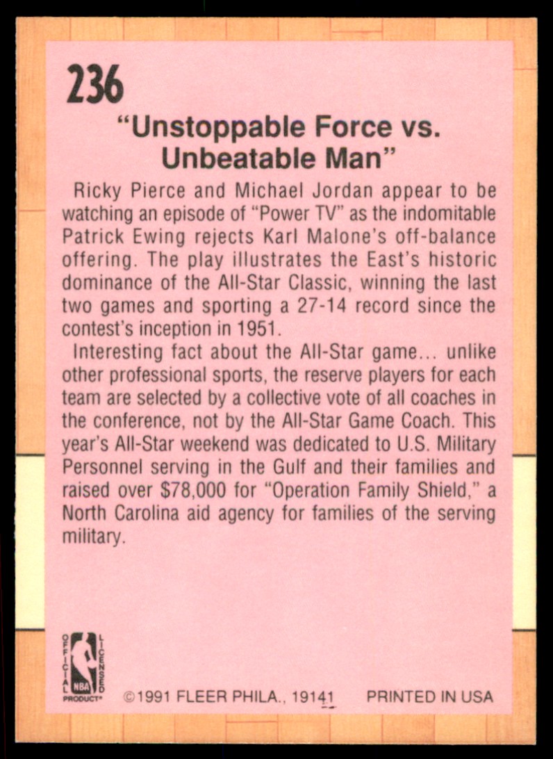 | Description: | EX | | Category: | Basketball | | Year: | 1991 | | Product: | Fleer Basketball | | Set: | Fleer Basketball Base | | Team: | All Star Game 91 | | Card Number: | 236 | | Dimensions: | 3½" x 2½" |