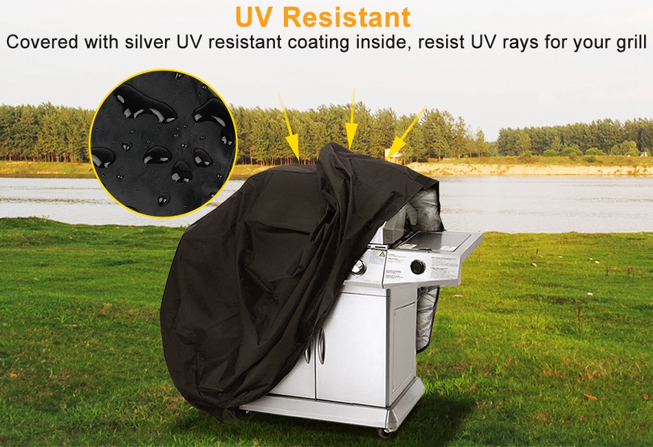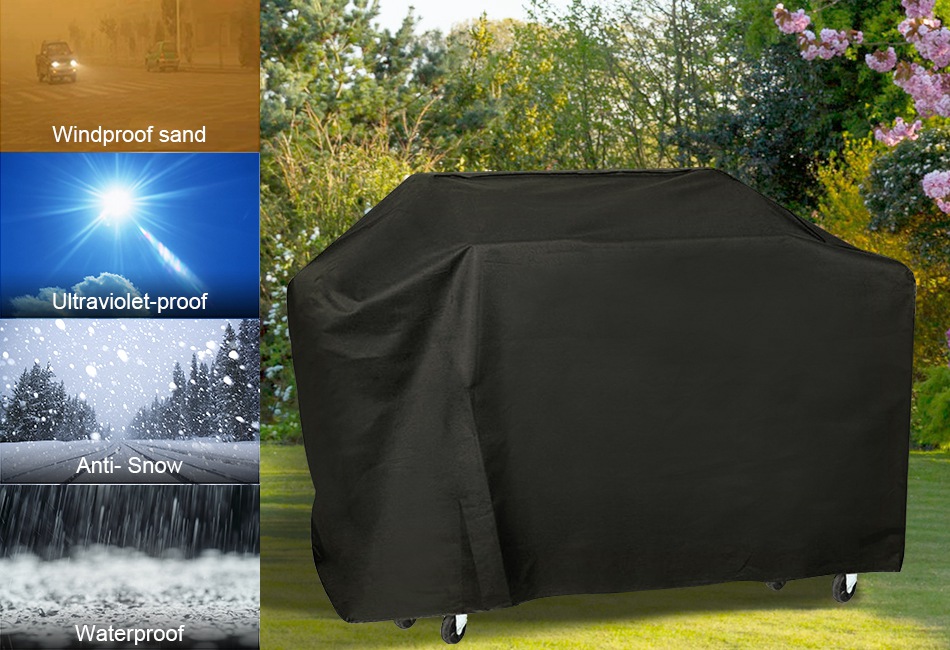 BBQ Grill Cover Weather Resistant Outdoor Barbeque Grill Covers UV Resistant w/ PU Coating Adjustable Strap Fasteners for Charcoal Gas Electric Oven Shelf Stove Strong Protection. UV-Resistant & Waterproof. Easy to Cover & Remove. Portable & Durable.Easy to Clean. Features: *Strong Protection: Heavy-duty 210D Oxford fabric with double stitching and heat sealed seams make you have a great protector in rain, snow, ice, wind, dust or sun weather conditions, giving you extra protection for your BBQ grill and shelf. *UV-Resistant & Waterproof: Covered with silver PU coatings inside, our BBQ grill cover is UV resistant, rip-proof, and dust-proof, extending your BBQ equipment’s using life. Besides, our grill cover is waterproof, and it can withstand the water press up to 1500 Pa. *Easy to Cover & Remove: Our BBQ grill cover can be easily expanded and removed; you can fasten the drawstring to adjust the size. The grill cover size is 58 x 24 x 46inches, fitting most grill brand. *Portable & Durable: Our grill cover can be fold into a 7.48 x 4.72 x 1.57inch package, and comes with a storage bag for easy storage and carry-on. Due to the sturdy material, our cover is durable and won’t fade or wear out quickly. *Easy to Clean: Wipes with a damp cloth or hose with water and the dirt will come off easily, keeping clean all the time without spending extra time. Specifications: Type: BBQ Grill Cover Material: 210D Oxford Fabrics, PU Coating Color: Black Size: 58 inch: 145cm(Long)*61cm(Deep)*117cm(Tall)/ 58 x 24 x 46 inch (L X W X H) Description 58-inch BBQ Grill Cover Weather Resistant Outdoor Barbeque Grill Covers UV Resistant w/ PU Coating Adjustable Strap Fasteners for Charcoal Gas Electric Oven Shelf Stove Are you still letting your outdoor BBQ grill tools being damaged by suns, rains and wind every day? Our BBQ grill cover can provide extra protection for your expensive grill shelf and stove. The grill cover is made of 210D Oxford fabric and PU coatings, which is UV resistant, waterproof, and rip-proof, it can withstand the water press up to 1500Pa and can provide the strongest protection to your equipment. Due to the sturdy material, our cover is durable and won’t fade or wear out quickly. You can wear and remove it easily, and the drawstring downside can help you adjust the space according to the size of your objects. The grill cover size is 58 inches, fitting most grill brand, and can be fold into a package, and comes with a storage bag for easy storage and carry-on. Package Contents 1 x BBQ Grill Cover 1 x Carrying Pouch Seller Guarantee 1. 100% Brand-new and Good Quality 2. Item Located: California, United States 3. Handling time: Same Business Day 4. Fast shipping: US Fast shipping(1 to 5 Business days) 5. 60 Days Money Back + One Year Warranty