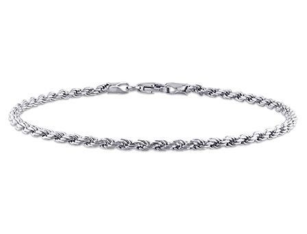 Introducing the elegant Women's Silver 2. 2mm Rope Chain Anklet. Crafted with precision and attention to detail, this anklet is a perfect blend of simplicity and sophistication. Made from high-quality silver, it features a beautiful rope chain, known for its classic and versatile design. The 2. 2mm width of the rope chain adds a delicate touch to this anklet, making it charming, thin, and lightweight for comfortable wear. With a length of 9 inches, it gracefully adorns your ankle, creating a stylish accent that effortlessly enhances your overall look. This anklet is the perfect gift for her, reflecting your impeccable taste and appreciation for minimalist beauty. Its twist design adds a subtle element of charm and uniqueness, making it an ideal piece for layering and stacking with other favorite accessories. Embrace the charming and delicate nature of this anklet, and let it become a symbol of your refined style.