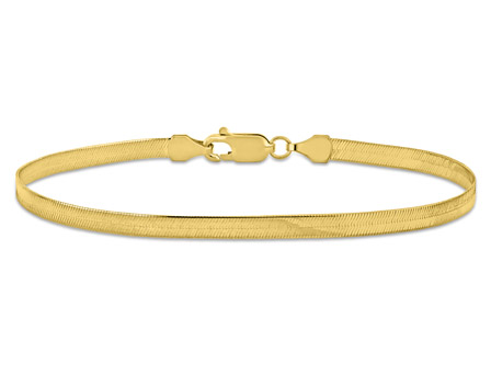 Introducing the Women's 10K Yellow Gold 3. 5mm Flex Herringbone Bracelet with Lobster Clasp, a mesmerizing piece that effortlessly blends elegance with modern sophistication. With its sleek and reflective design, this bracelet is sure to capture her heart and enhance her style. The 7. 5-inch Flex Herringbone Chain delicately drapes around her wrist, creating a fluid and dynamic look that reflects her unique personality. Its intricate pattern exudes a sense of timeless charm, making it an ideal accessory for layering with other bracelets or wearing alone as a captivating statement piece. Crafted from premium 10K yellow gold, this bracelet boasts a radiant shine that catches the light at every turn. The lobster clasp ensures a secure and comfortable fit, allowing her to wear it with confidence throughout the day and night. As a gift for her, it holds special significance. Its charming and delicate construction epitomizes minimalist beauty, making it a perfect choice for the woman who appreciates understated elegance. Whether for a special occasion or as a cherished surprise, this bracelet is a thoughtful symbol of love and admiration.