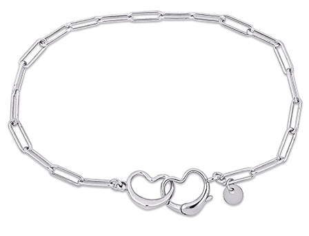 Looking for a fashionable yet timeless bracelet to share with your best friend? Look no further than Women's Sterling Silver Paper Clip Link Bracelet with Double Heart Clasp! Crafted from high-quality materials, this bracelet features an elegant paperclip link chain with an oval shape and interlocking double heart clasp. At 7. 5 inches in length, it's the perfect size for layering and stacking with other bracelets, while its simple and minimalist design makes it ideal for everyday wear. Plus, it comes in a beautiful gift box, making it a thoughtful and meaningful present for any occasion. So why wait? Share the love with Women's Sterling Silver Paper Clip Link Bracelet with Double Heart Clasp!