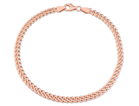 Compliment your look with this stylish Curb Chain Men's Bracelet. Crafted in lustrous rose plated sterling silver, this chunky 9-inch bracelet is securely and comfortably fastened with a lobster clasp. Enhanced with a high polished finish, this captivating bracelet is made in Italy will make a standout addition to any jewelry collection. A man can never have enough bracelets and this one is a must have.