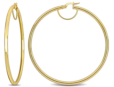 Add a fashionable piece to your jewelry collection with this stylish pair of Thin Hoop Earrings. Crafted in lustrous yellow gold they feature high polish thin hoops with a hinged post to make them easy to put on and take off. They make an ideal gift for yourself or someone special. They work well for casual and formal occasions and complement almost any outfit. These hoop earrings are secures with clip-in closures.