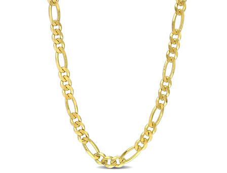Demonstrate your affection with this warm hued Figaro Necklace. Crafted in lustrous yellow plated sterling silver, it showcases a lightweight figaro chain. Buffed with luster, this necklace is made in Italy and measures 18-inch in length and secures with a lobster clasp. Make your loved one feel special with this eye-catching figaro necklace. This beautiful figaro necklace will be a perfect gift for your special one.