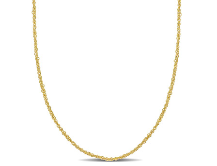 Presenting the "Miabella Women's 14K Yellow Gold Singapore Necklace", an emblem of understated elegance and timeless style. As a part of the's renowned jewelry line, this necklace embodies the perfect balance of simplicity and glamour that modern women appreciate. Exquisitely crafted from premium 14K yellow gold, this Singapore chain necklace features a unique twisted design that shimmers with every move, adding a subtle touch of sophistication to your attire. The sparkling finish enhances its reflective and shiny appearance, making this necklace a shining testament to your exquisite taste in jewelry. Measuring 18 inches in length and equipped with a secure spring ring clasp, this necklace sits comfortably around your neck, offering a look that's both charming and delicate. With its thin and minimalist design, this necklace embodies the elegance of simplicity while also allowing for the flexibility of layering and stacking, thus catering to your styling needs and preferences.