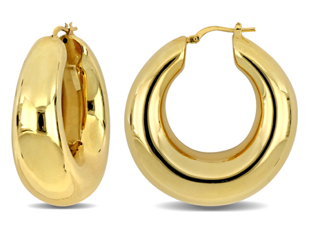 Add a versatile accessory to your collection with these Hoop Earrings. Crafted in lustrous yellow plated sterling silver, these everyday earrings feature two glossy huggie hoops secured with clip-in closures. Enhanced with a polished finish, these splendid hoop earrings are made in Italy. These classy earrings will have you feeling your best all day long.