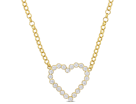 Make a star-like appearance at the next evening party with this opulent Heart Necklace. Crafted in lustrous yellow plated sterling silver, this charming necklace showcases 22 round-cut cubic zirconia gemstones suspended on an 18-inch rolo chain secured with a lobster clasp. Enhanced with a high polished finish, this versatile necklace will compliment every outfit making it a go-to accessory for you.