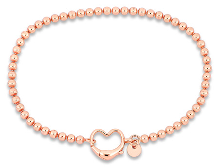 Indulge in the timeless beauty of this Women's Rose Plated Sterling Silver Bead Link Bracelet with Heart Clasp. Crafted with care and attention to detail, this bracelet features delicate pink beads linked together in a stunning pattern, culminating in a lovely heart-shaped clasp. The perfect addition to any outfit, this bracelet is versatile enough to be worn alone or stacked with other bracelets for a layered look. With its romantic heart-shaped clasp, it makes an ideal gift for the special someone in your life. Whether worn as an everyday accessory or on a special occasion, this bracelet exudes elegance and style. So add a touch of sophistication to your jewelry collection with this exquisite piece.