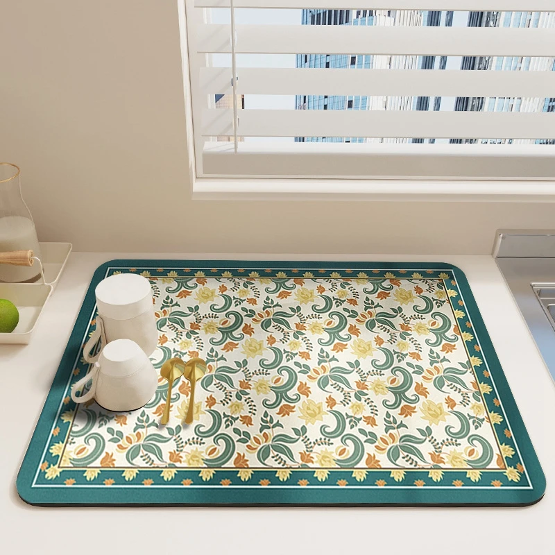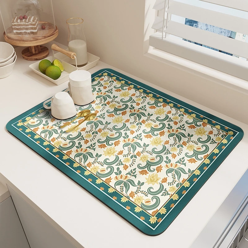 Drain Pad Super Absorbent Dish Drying Mat Fast Drying Drainer Mats Dinnerware Tableware Placemat Kitchen Bathroom Rugs Features: 1. Crystal velvet material: This kitchen drain mat is durable, flexible and not deformed. 2. Design: It can quickly absorb water and coffee, and keep the table clean and tidy; The bottom has strong adsorption, and is firmly attached to the desktop, which is not easy to shift. 3. Drainage: Help to clean tableware drainage, prevent mildew bacteria, and clean and sanitary. 4. Wide use: It can be used not only as coffee pad, but also as kitchen, bar, bathroom tableware and cup drying pad. Note: Due to the different colors displayed on the computer, the actual colors may be slightly different from the above figure. Thanks for your understanding.