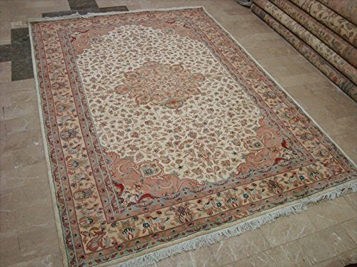 Gorgeous Floral Medallion Chirag Birds Area Rug Wool Silk Hand Knotted Carpet (9 x 6)'. The rug measures approximately 8.10 x 6.3 Foot (269 X 191 cm). The floral pattern provides an excellent look which suits best in your room. Beautifully constructed and multicolored, easily compatible with most home decor. The patterns are mostly rectangular or flowery with pointed features which should do with the weaving technique used. They also look befitting in many homes to a wide range of applications. These have become very popular because of the pleasant colors and reasonable prices. This is durable carpet perfectly styled for home furnishings. Please view the picture at the bottom to see the bright side of the rug. This rug can help brighten up a room if you do not get much sunlight. Simply put the bright side facing the seating area and it will make the room appear surprisingly bright. This provides excellent, stylish design which makes your room gorgeous. Vacuum regularly to clean the dust and crumbs from settling into the roots of the fibers. 100% Genuine Hand Knotted-Rug not hand tufted.