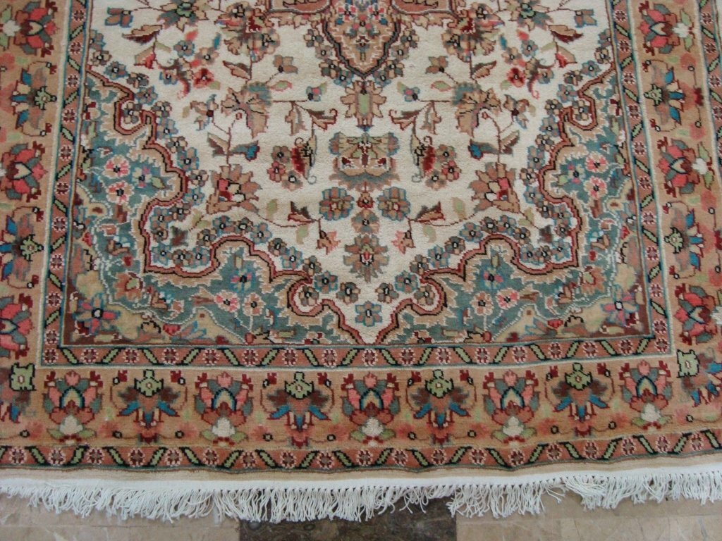 Sarafia Beauty Floral Oriental Area Rug Hand Knotted Wool Silk Carpet (6 x 4)'. For the perfect combination of unique, beautiful style and high-quality durability, the attention to detail on these beautiful contemporary rugs is noticed as soon as you lay eyes on the carpet. The rug appears dull when viewed from one side, and shiny from the other side. Please view the picture at the bottom to see the bright side of the rug. This rug can help brighten up a room if you do not get much sunlight. Simply put the bright side facing the seating area and it will make the room appear surprisingly bright. Rectangle shape with excellent floral pattern. An ideal choice for the modern family room. Blended color schemes match well with all styles of furniture and art. Give your home an elegant touch with this amazing rug carpet. Great for any decor, adds texture to the floor and complements any decor. 100% Genuine Hand Knotted-Rug not hand tufted like other sellers.