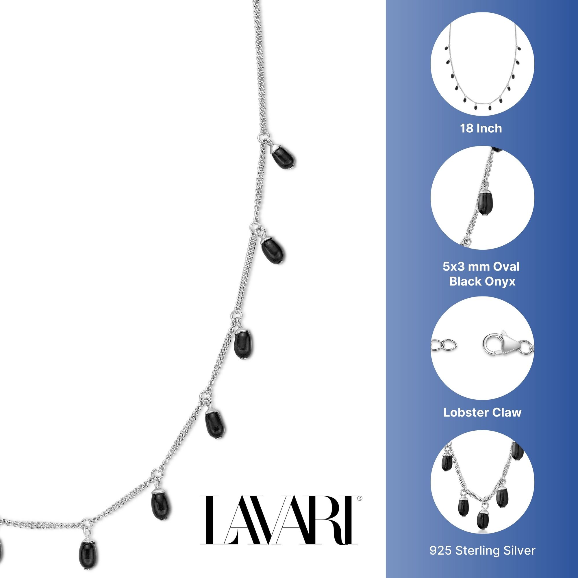925 Sterling Silver 18" Link Chain Necklace With Oval Black Onyx Fine Jewelry