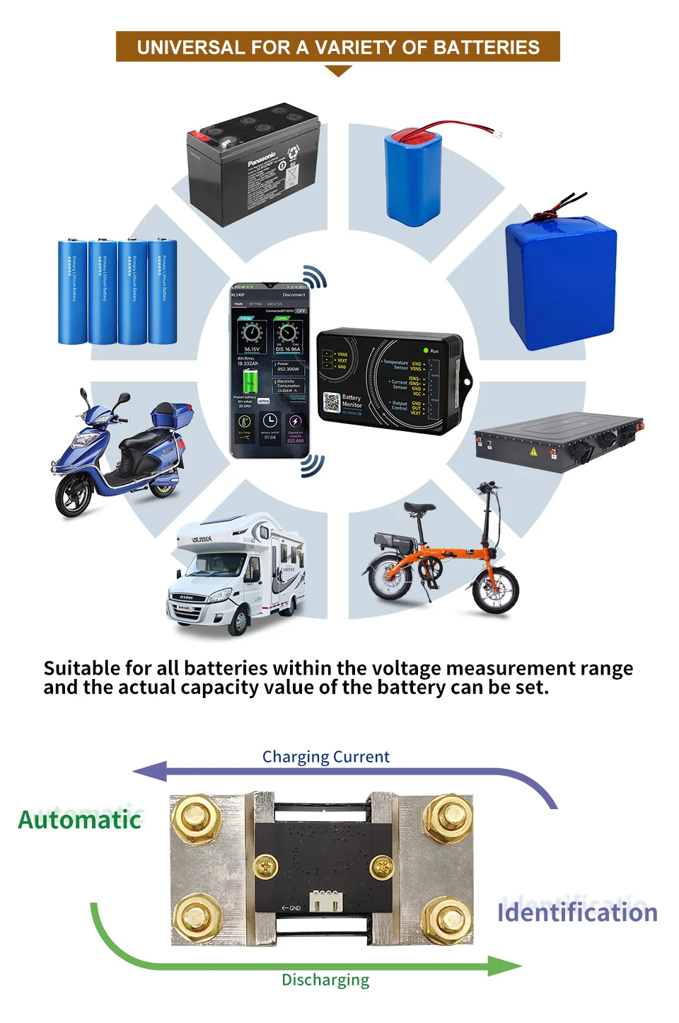 ►Suitable for a variety of batteries: ternary lithium batteries, lead-acid batteries, lithium phosphate batteries, etc., as long as the battery is within the voltage measuring range.