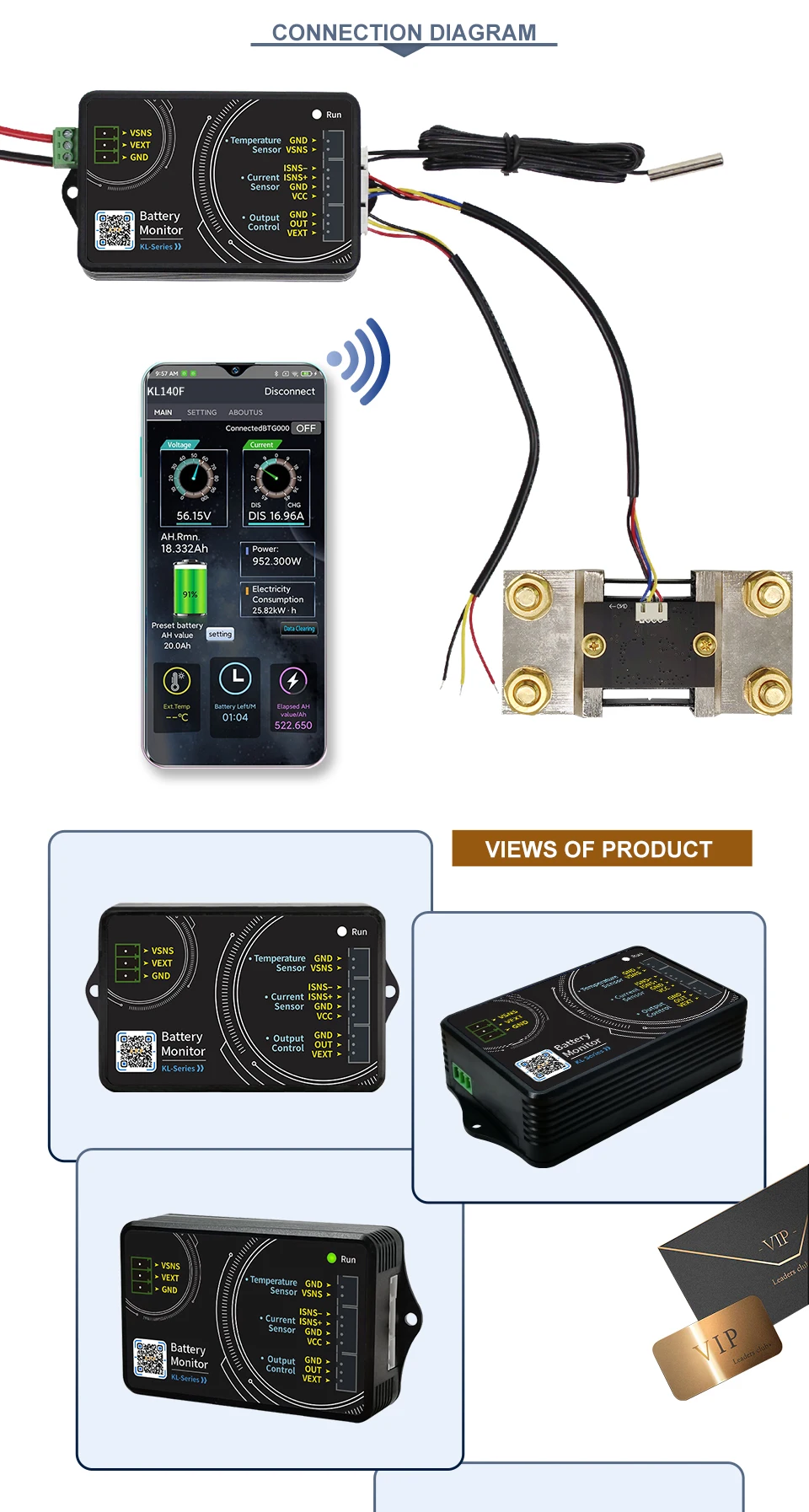►The shunt and screws are made of pure copper material, which has good electrical conductivity, low heat generation, and low power consumption. In the standby state, it will not consume too much battery power.