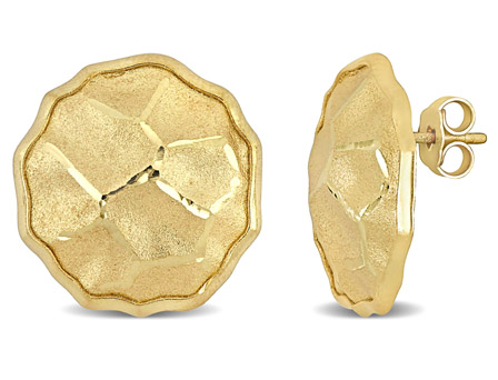 Reinvent your style with these one-of-a-kind Disc Stud Earrings. Crafted in lustrous yellow plated sterling silver, these contemporary earrings feature two flat textured hammered discs. Enhanced with a polished finish, these splendid made-in-Italy earrings are secured with butterfly closures. Show off your best moves with these stunning earrings.