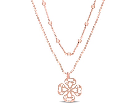 Whether you are going for dinner or just to get coffee, this classic Ball and Bead Multi-Strand Necklace is the go-to piece. Mounted in lustrous rose plated sterling silver, this ravishing 19-inch necklace features beads placed at regular intervals with a clover style design pendant. Securely and comfortably fastened with a lobster clasp, this sumptuous necklace is made in Italy. Enhanced with a high polished finish, this versatile necklace is a crucial accessory to any wardrobe and is great for layering.