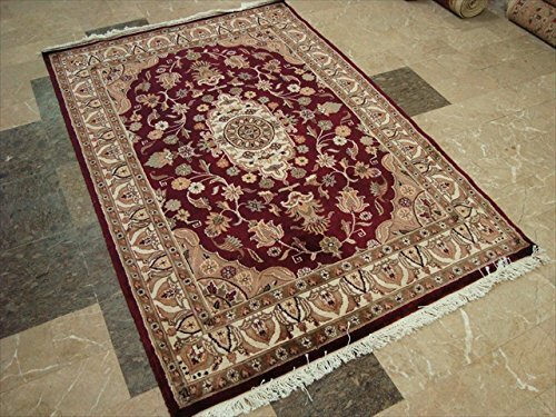Mehroon Ruby Red Exclusive Rectangle Area Rug Hand Knotted Wool Silk Carpet (6 X 4)'. Exclusive Design Rare Mehroon Ruby Red Hand Knotted Rug/Wall Tepestry. For the perfect combination of unique, beautiful style and high-quality durability, the attention to detail on these beautiful contemporary rugs is noticed as soon as you lay eyes on the carpet. They also look befitting in many homes to a wide range of applications. These have become very popular because of the pleasant colors and reasonable prices. This durable carpet is perfectly styled for home furnishings. The rug to appear dull when viewed from one side, and shiny from the other side. Please view the picture at the bottom to see the bright side of the rug. This rug can help brighten up a room if you do not get much sunlight. Simply put the bright side facing the seating area and it will make the room appear surprisingly bright. This provides excellent, stylish design which makes your room gorgeous. Vacuum regularly to clean the dust and crumbs from settling into the roots of the fibers. Customer satisfaction is our top priority. 100% genuine hand knotted-rug not hand tufted.