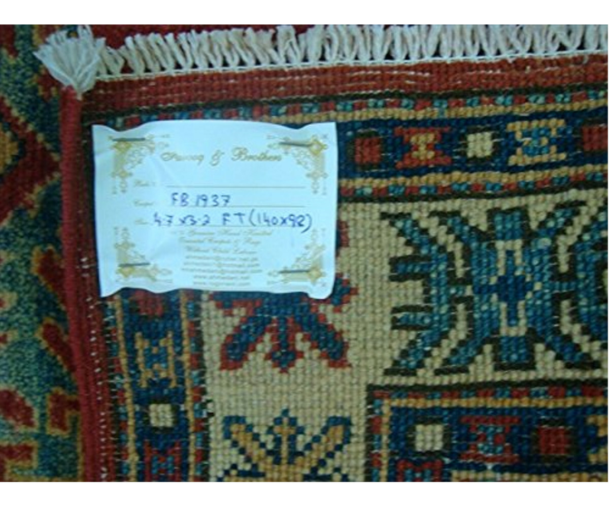 Super Kazak Caucasion Geometric Designed Vegetable Dyed Ghazni Wool Hand Knotted Rug Carpet (4.7 x 3.2)'. Kazak is a modern shape of old Caucasian rugs which strictly adheres to traditional design elements of the Caucasus. It has elements such as the stepped hooked polygons, geometrical medallions and rosettes, presented in more stylized manner and with a new dimension. Natural dyes produce soft luminous shades and abrashes causing a beautiful sheen. Handspun woolen yarn is normally used in the variety of vibrant warm colors. Kazaks rugs in our collection are all fine quality pieces from Afghanistan made with Ghazni handspun wool and natural dyes. It Takes at least 6 months to make a master pcs like this. 100% Genuine Hand Knotted-Rug not hand tufted . 100% Genuine Hand Knotted-Rug not hand tufted.