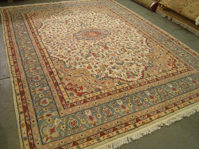 Ivory Pestal Flower Allover Hand Knotted Rug Carpet Silk Wool (12.3 x 9.0)'. The rug appears dull when viewed from one side, and shiny from the other side. Please view the picture at the bottom to see the bright side of the rug. This rug can help brighten up a room if you do not get much sunlight. Simply put the bright side facing the seating area and it will make the room appear surprisingly bright. Give your home an elegant touch with this amazing rug carpet. Great for any decor, adds texture to the floor and complements any decor. 100% Genuine Hand Knotted-Rug not hand tufted.