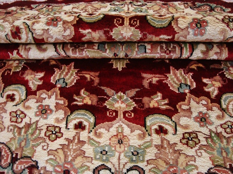 Round Red Lovely Medallion Floral Hand Knotted Rug Wool Silk Carpet (4 x 4)'. The rug to appear dull when viewed from one side, and shiny from the other side. Please view the picture at the bottom to see the bright side of the rug. This rug can help brighten up a room if you do not get much sunlight. Simply put the bright side facing the seating area and it will make the room appear surprisingly bright. Blended color schemes match well with all styles of furniture and art. Give your home an elegant touch with this area rug. Great for any decor, it adds texture to the floor and complements any decor. 100% Genuine Hand Knotted-Rug not hand tufted.