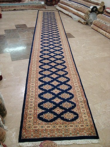 Exclusive Navy Blue Jaldar Hand Knotted Wool Silk Carpet Runner Rug (16.6 x 2.6)'. For the perfect combination of unique, beautiful style and high-quality durability, the attention to detail on these beautiful contemporary rugs is noticed as soon as you lay eyes on the carpet. The rug to appear dull when viewed from one side, and shiny from the other side. Please view the picture at the bottom to see the bright side of the rug. This rug can help brighten up a room if you do not get much sunlight. Simply put the bright side facing the seating area and it will make the room appear surprisingly bright. Rectangle shape with excellent floral pattern. Ideal choice for the modern family room. Blended color schemes match well with all styles of furniture and art. Give your home an elegant touch with this amazing rug carpet. Great for any decor, adds texture to the floor and complements any decor. 100% Genuine Hand Knotted-Rug not hand tufted like other sellers.