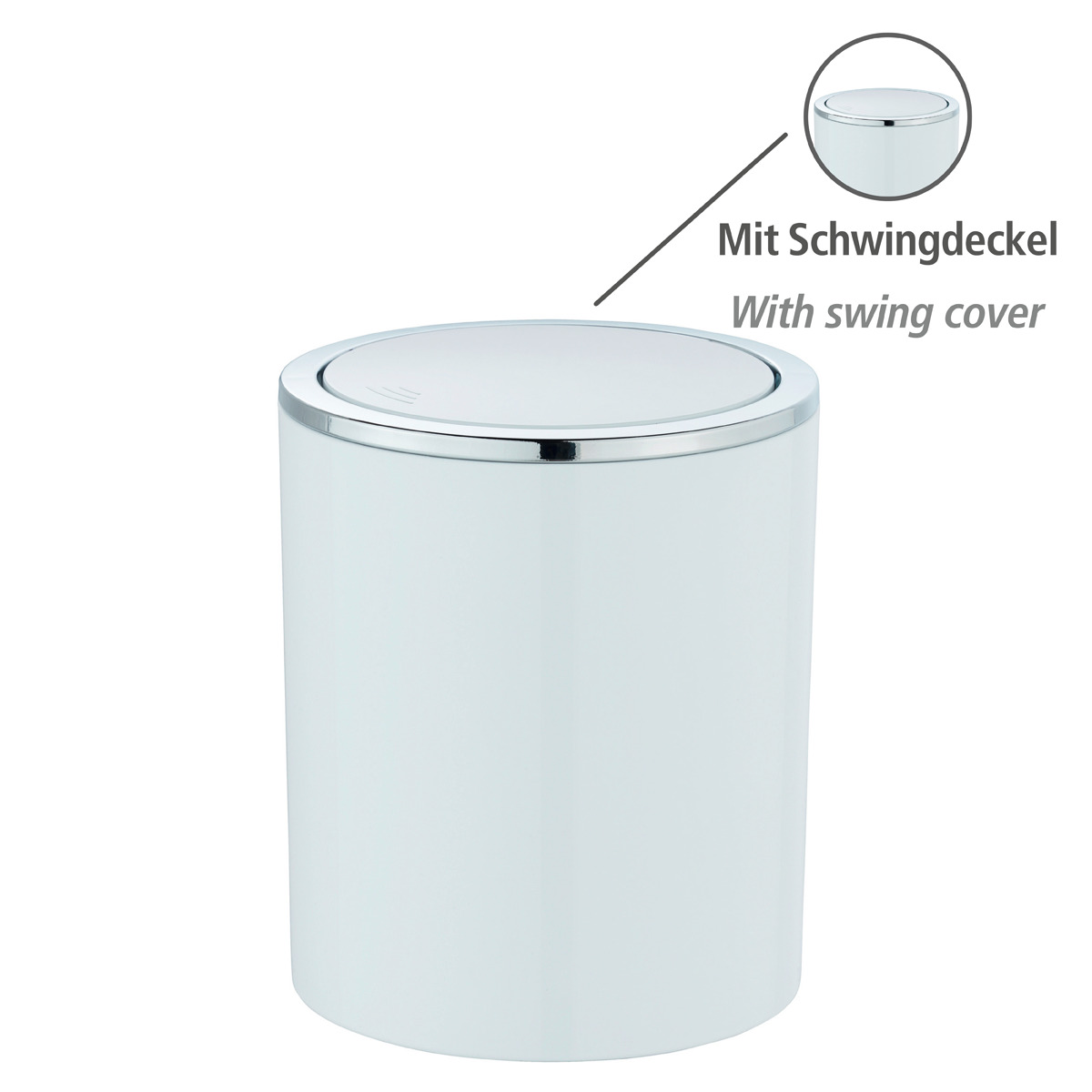 Der elegante Kosmetikeimer aus der Bad-Serie Inca überzeugt mit einem Fassungsvermögen von 2 Litern und der attraktiven Kombination aus reinem Weiß mit glänzendem Chrom.