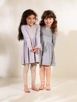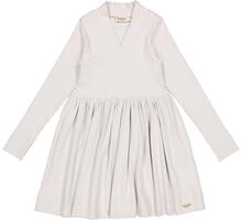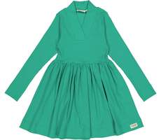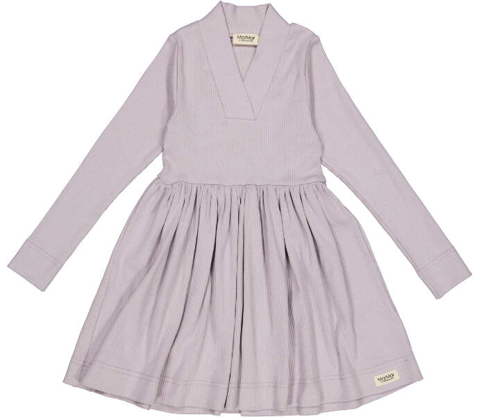 Ribbed dress in modal quality with long sleeves and a beautiful fit. V-neck, long narrow sleeves and a cute skirt. The length of the dress goes above the knee.