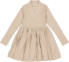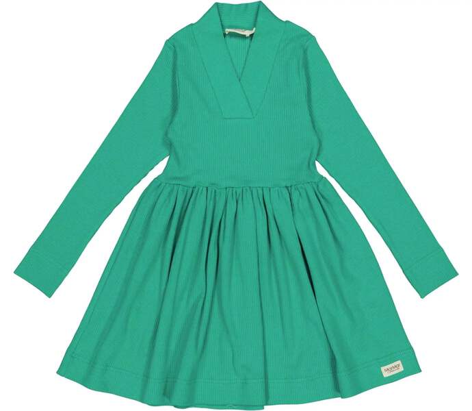 •LOOK: Ribbed dress in modal quality with long sleeves and a beautiful fit. V-neck, long narrow sleeves and a cute skirt. The length of the dress goes above the knee.