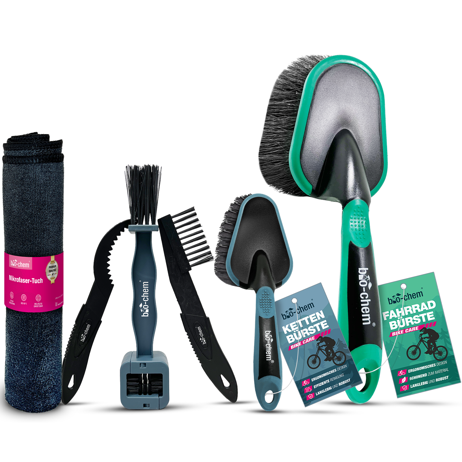 Sofort Kauf Fahrradzubehör-Set 6-tlg. – Bürsten für Kette und Rahmen , Tuch – Pflege & Glanz