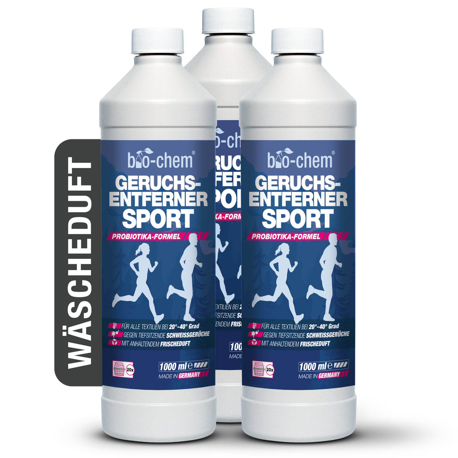 Sofort Kauf bio-chem Geruchsentferner & Wäscheduft Sport 3x 1 L - Probiotischer Waschzusatz