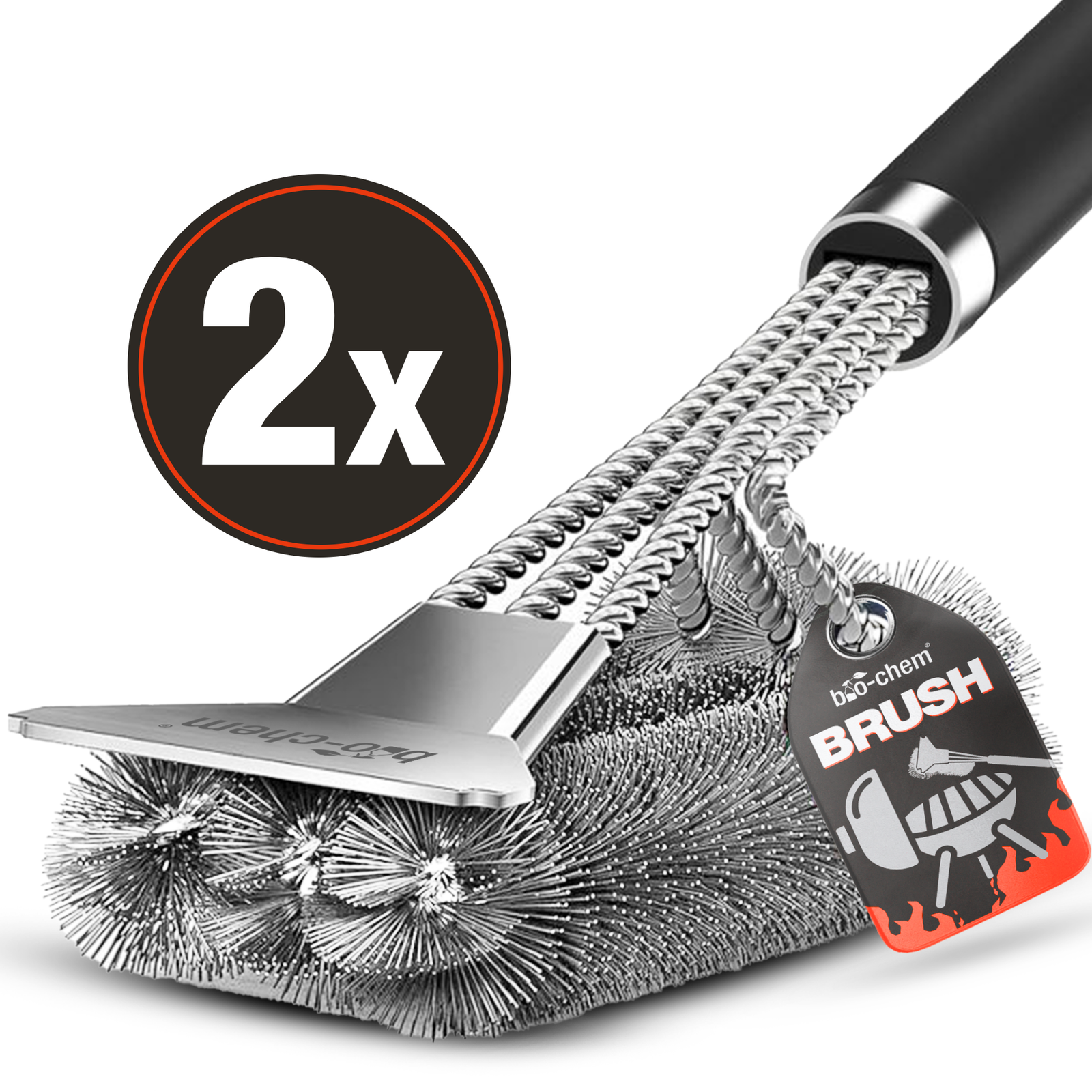 Sofort Kauf bio-chem Grillbürste 2X für Gasgrill Holzkohlegrill BBQ Grillrost mit Schaber