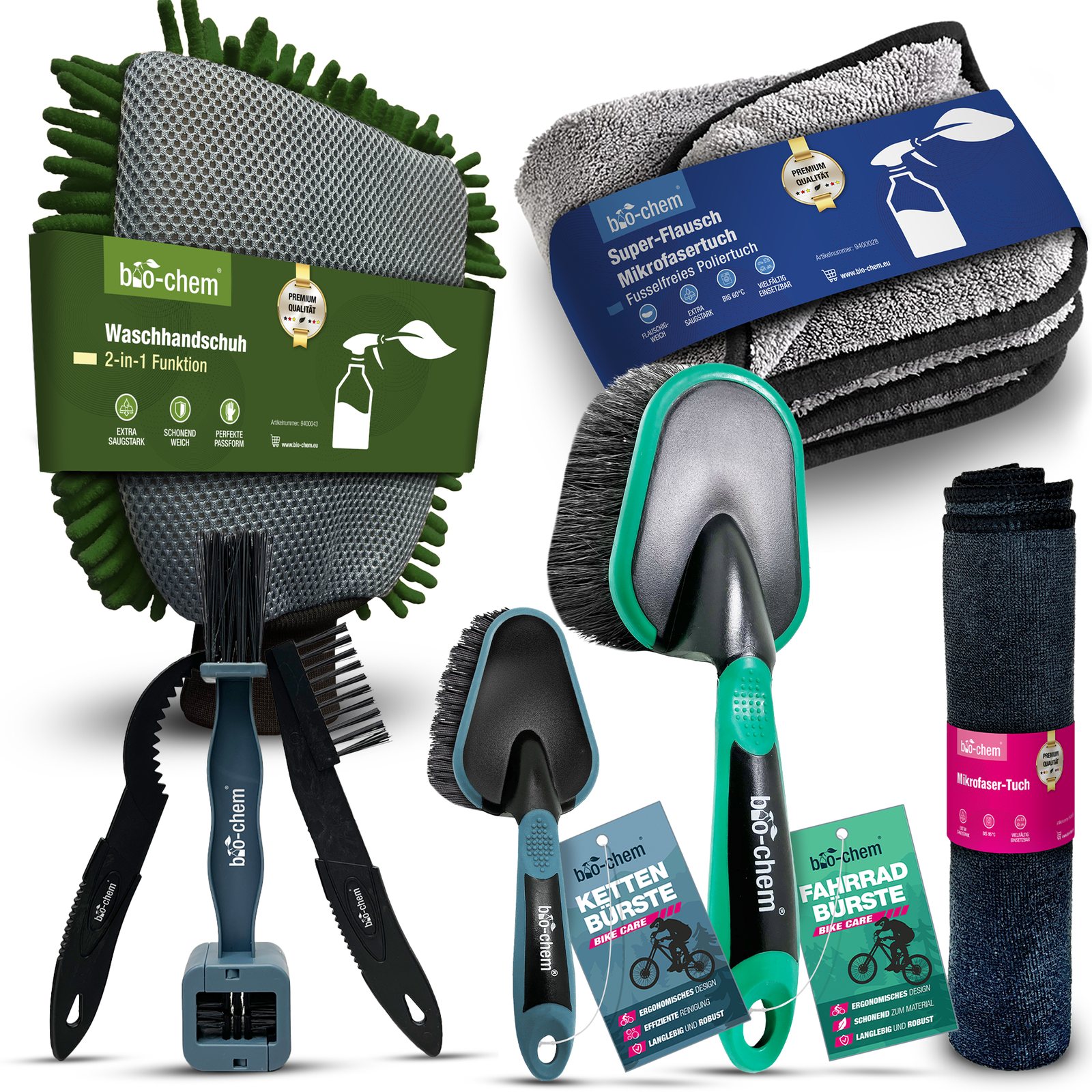 Sofort Kauf Fahrradzubehör-Set 8-tlg. – Bürsten, Tücher, Handschuh – Pflege & Reinigung