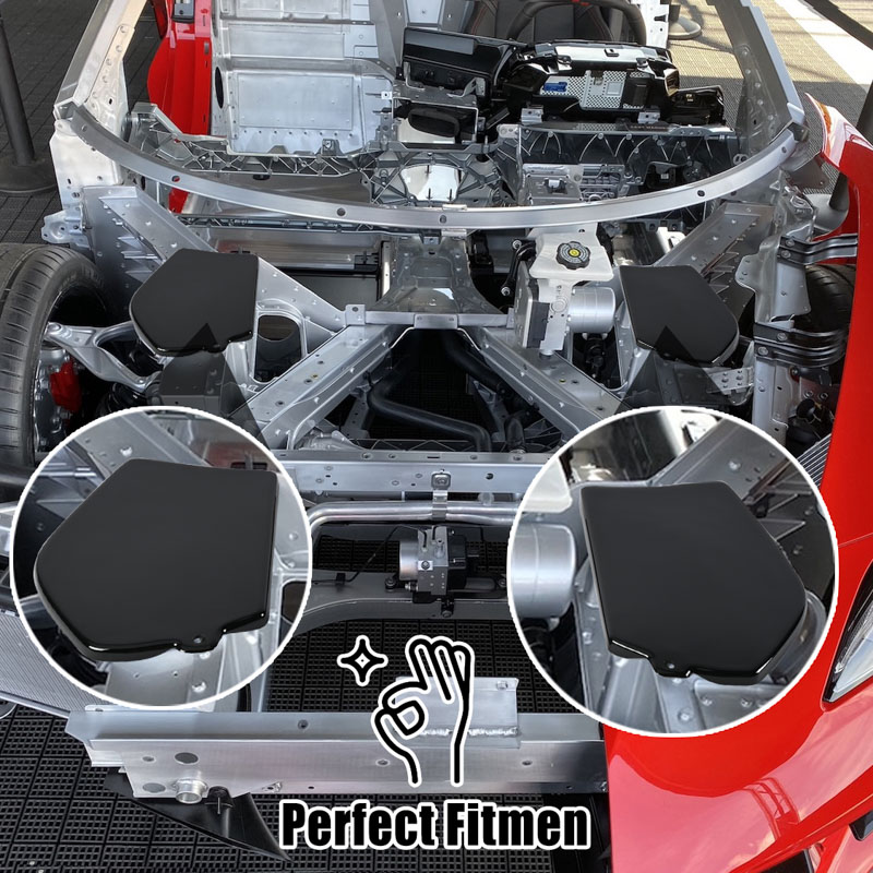 For Corvette C8 Front Strut Tower Covers Whether you know it or not, there is an issue with the all new 2020 for Corvette C8 that allows water to pool in the front strut towers. The towers are made from aluminum but the strut hardware isn’t and the pooling water causes the top nut and bolt to rust. Our for Corvette C8 Strut Tower Covers provides a simple solution and prevents the water from entering the strut towers. Our covers are made from durable black ABS plastic and look like a factory piece once installed. Installation of our for Corvette C8 Strut Tower Covers can be accomplished in less than 30 minutes with minimal tools. Customers with front lift adjustable height option (Option code E60): for Chevrolet recently issued a technical service bulletin regarding the reservoir cap leaking. The DOT 4 brake fluid used in the front lift system can have a negative reaction with the chemicals that are in the ABS plastic. It has been described to cause “catalytic embrittlement in the ABS, making it very brittle and weak”. While ABS plastic is normally very durable this chemical reaction with the brake fluid can cause the cover to break. Please ensure that your reservoir cap is not leaking fluid prior to installation of the passenger side strut tower cover. Strut Tower Cover Product Installation Step Please contact us if you need to install the video