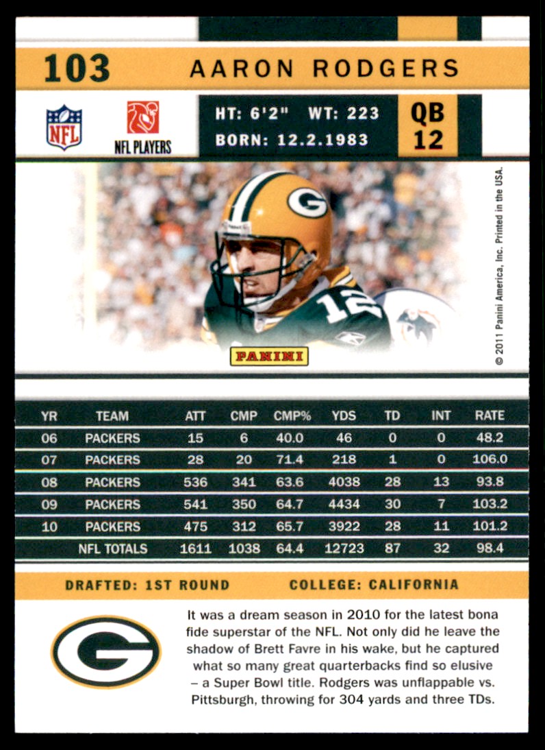 | 2011 Score Aaron Rodgers Green Bay Packers #103 1092 |