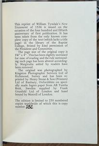 A lovely copy of this very exclusive boxed Ltd. Ed. production of the Tyndale New Testament. One of only 250 numbered copies (No. 152).