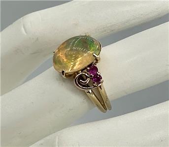 4 Carat Mexican Fire Opal Ruby Ring 14 Karat Gold Art Deco Retro Cocktail Ring