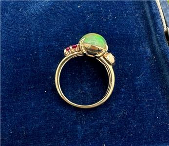 This is a spectacular antique Retro - Art Deco Four Carat Mexican Fire Opal and Ruby Ring.