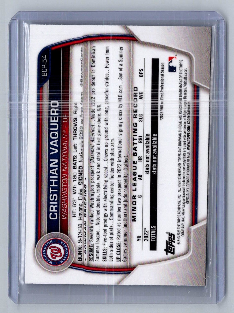 2023 Bowman Chrome Prospects Cristhian Vaquero Washington Nationals #BCP-54