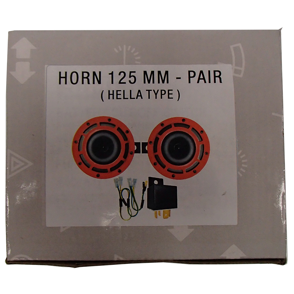 DESCRIPTION One New Aftermarket Replacement Fits Red Horn Set Fits Various ATV, RV, SUV, Pickup Trucks, Hot Rods, Motorcycles, etc. Hi-low Electric Disk (1 High & 1 Low Horn) Sound Output: 139DB - 530-680 HZ These Compact Horns are Extremely Loud (i.e. a Stock Car Horn is usually 90-100 Db, these Horns are 139 Db).
