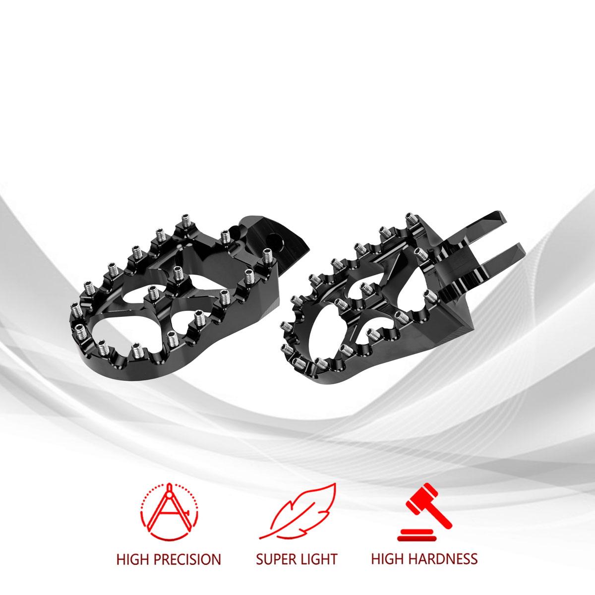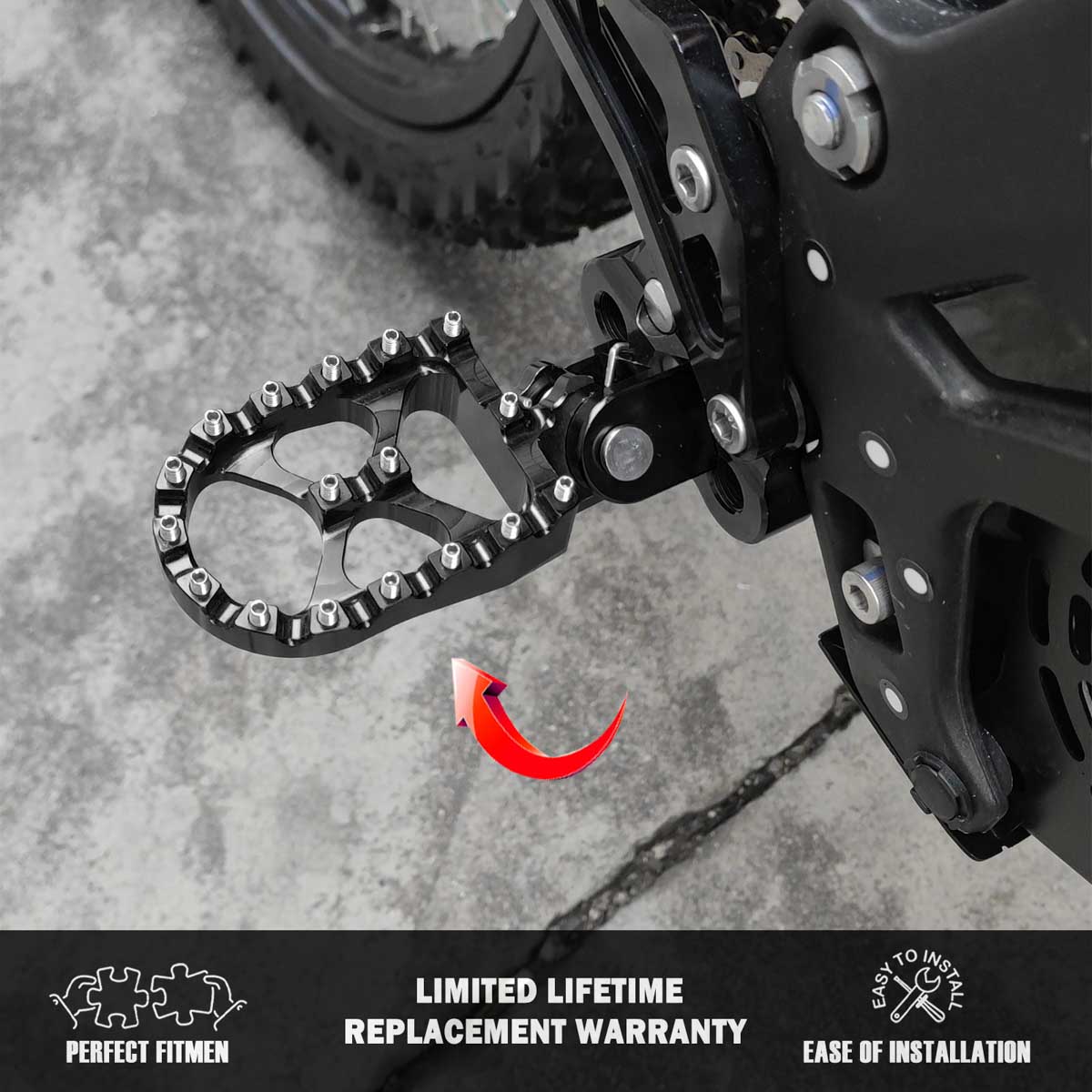 Features: --Oversized footpegs designed specifically for SUR-RON with the correct size mounting hole and mount design meaning a perfect fit for sur-ron with no play or wear on your frame. --Manufactured from billet 6061 aluminium and anodized. --The products have accurate size mounting holes and mounting design, which will not cause wear to your shoe frame. Item specifictaions: Colour: Black(We also have Red, If you need to change the color, please contact us or leave a message.) Brand new 57mm wide fat footpegs Machined from 6061 Aluminum Billet Permanent stainless steel teeth Extra wide platform to improve comfort and control Exclusive "X" bridge and Light weight design High quality, High hardness and High precision Easy to install, No Installation Instruction Fitment: Fit For Segway X160 & X260 Fit For Sur-ron for Light Bee X / LBX Package Included: A pair of foot pegs footrest with installation bolts