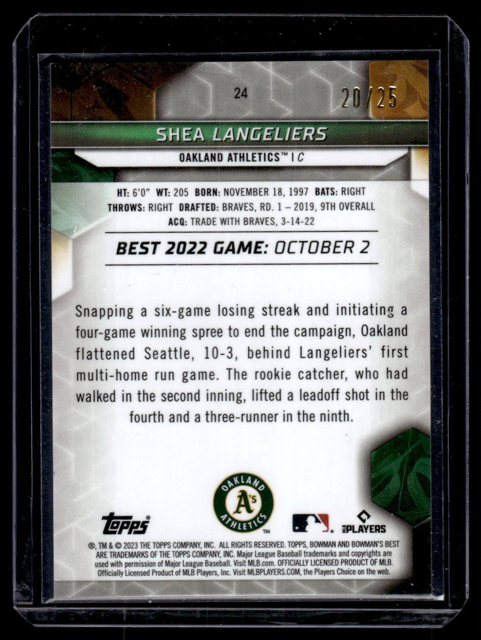 | 2023 Bowmans Best Red Parallel Shea Langeliers Rookie 20/25 New York Mets #24 | ||||||||||||||||||||