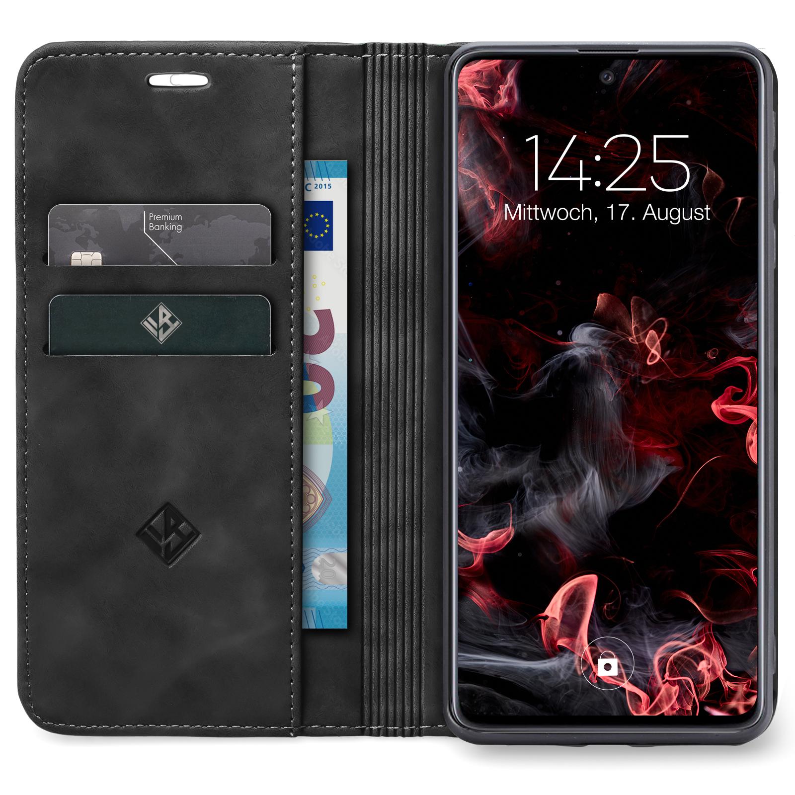 Hochwertiges Case passend für Samsung Galaxy A52s 5G / A52 5G / A52 - Exakte Passgenauigkeit durch verstärkte Silikonschale (Schwarz) - Qualitative Verarbeitung mit strapazierfähigen Materialien - Smartes Design mit Geldfach und zwei Kartenfächern - Optimierter 360 Grad Schutz mit innen liegenden Magneten - Schneller Blitzversand und engagierter Kundendienst an 7 Tagen die Woche!