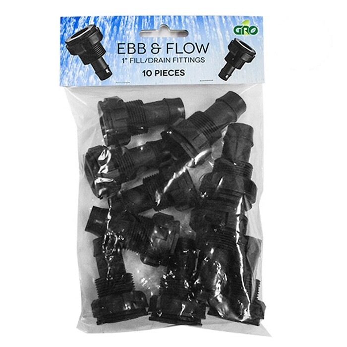 Made from super durable, high quality plastic that?s heavier and thicker than the competition?s, these threaded Ebb & Flow fittings are the superior choice for your reservoir and flood table irrigation setups. Sold in bags of 10.