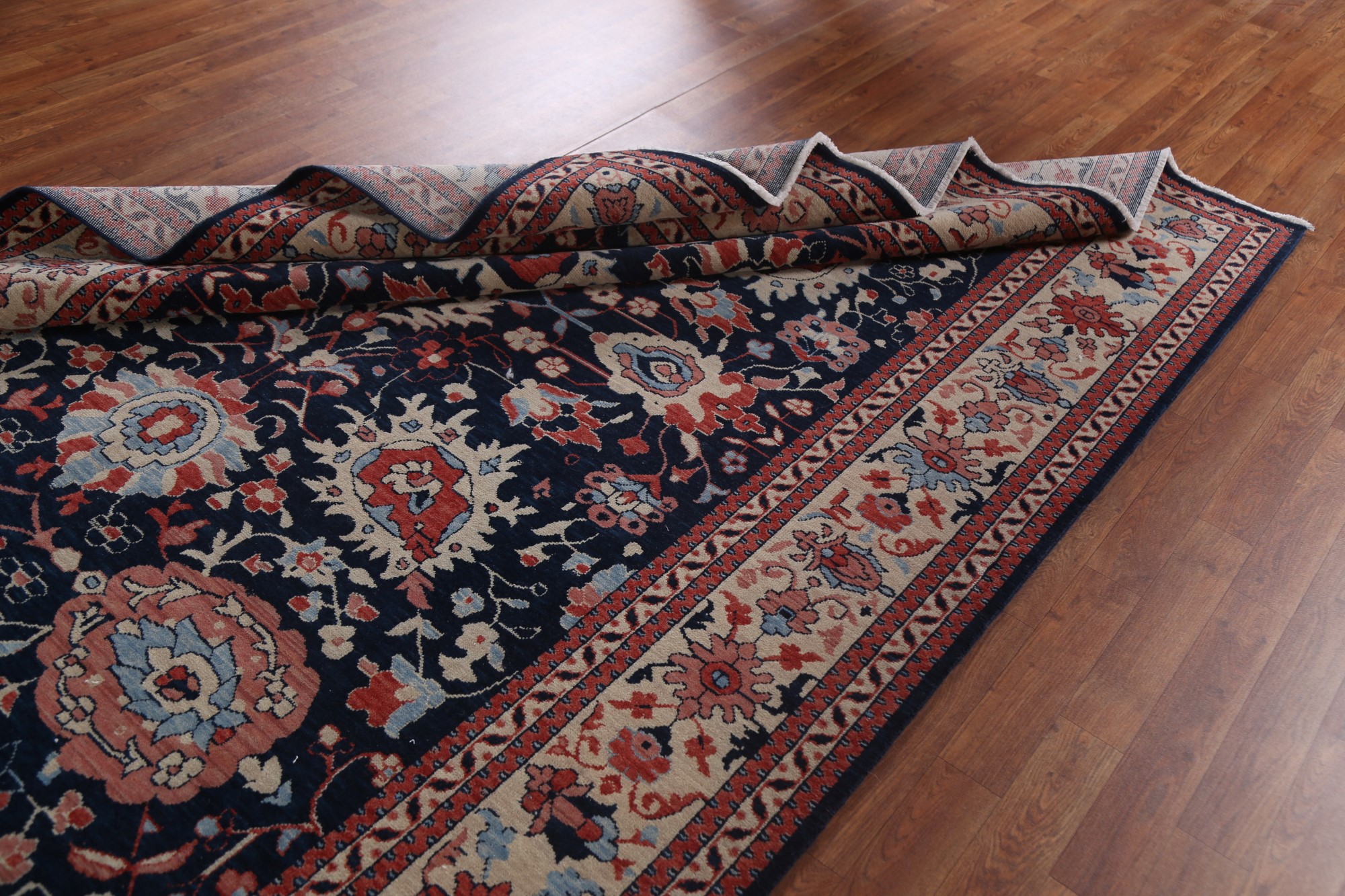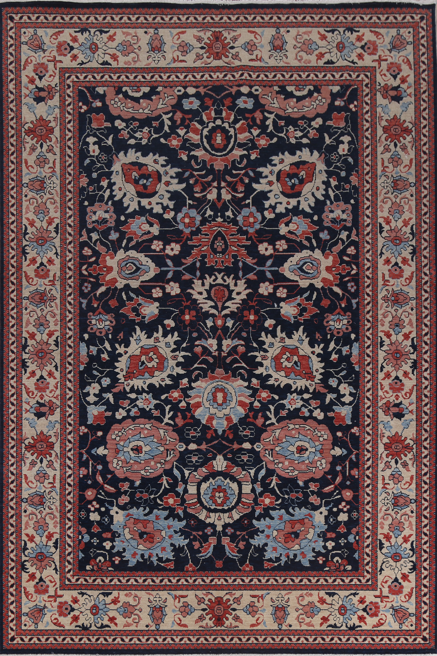 Navy Blue Floral Ziegler Turkish Handmade Rug 7x10 ft Luxury Living Room Carpet